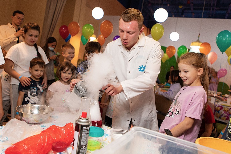 The refinery organized a spectacular Children's Day event for employees' families. Kids enjoyed a fun-filled day with balloon decorations, an exciting science show with dry ice experiments, ball pit play areas, and a thrilling fire demonstration — creating unforgettable memories for the youngest members of the Antipinsky family.